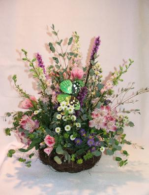 This beautlful wildflower basket is sure to be a hit for just about any occassion. It is brimming with Asters, Alstromeria, Godezia, and Solidago.
